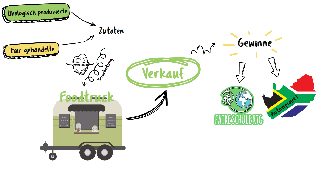 Die Überschüsse aus unseren Einsätzen fließen in den gemeinnützigen Verein „Faire Schule RTG e.V.“, den Schüler:innen und Lehrkräfte unserer Schule im Jahr 2019 gegründet haben. Die Satzung sieht vor, dass die Hälfte der Überschüsse in schulinterne Projekte zur Förderung der Nachhaltigkeit investiert werden und die andere Hälfte, in Kooperation mit dem Filius e.V. Schwerte, an unser Partnerprojekt „Nourish“ in Südafrika fließt.